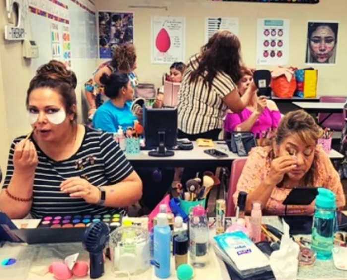 Beauty at MADRES is more than just aesthetics—it's an empowering voyage towards self-assurance, economic independence, and mastery of cosmetic artistry. Dive deep into the transformative world of beauty with our hands-on makeup class, where participants explore not just the art of enhancing natural features, but also the vital foundation of skin care.